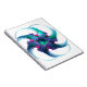 Swirls of pink, aqua, blue and purple with a white background make up this beautiful abstract fractal image. Now imagine it spinning around.