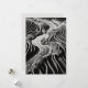 A stunning high-resolution black and white abstract landscape, crafted in the style of fractal art. This intricate composition features swirling lines that echo the paths of rivers or streams flowing through a rugged, textured terrain. Sparse vegetation and natural forms emerge through complex patterns, while the interplay of light and shadow adds depth and dimensionality. Perfect for lovers of modern, nature-inspired abstract art with a monochromatic edge.