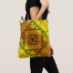Three styles of hand-drawn fractals, including Sierpinski triangles, Apollonian gaskets, and a similarly themed square design, make up the layers of this geometric mandala, overlaid onto a bright yellow and orange gradient. This bag is available in multiple sizes and both tote bag and cross body bag styles.