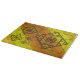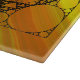 Three styles of hand-drawn fractals, including Sierpinski triangles, Apollonian gaskets, and a similarly themed square design, make up the layers of this geometric mandala, overlaid onto a bright yellow and orange gradient.