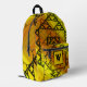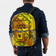 Three styles of hand-drawn fractals, including Sierpinski triangles, Apollonian gaskets, and a similarly themed square design, make up the layers of this geometric mandala, overlaid onto a bright yellow and orange gradient. Customise the initial on the front pouch of this backpack with your own monogram to make this accessory uniquely yours.