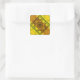 Three styles of hand-drawn fractals, including Siepinski triangles, Apollonian gaskets, and a similarly themed square design, make up the layers of this geometric mandala, overlaid onto a bright yellow and orange gradient.