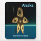 A brown-toned fractal image suggesting a highly-stylized Inuit hunter, wearing traditional fur clothing, holding a harpoon with an ivory head. The image is superimposed on a background depicting the dark polar winter. Text reading "Alaska" appears in glowing blue and white. Customize by adding your own additional text.