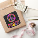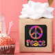 A peace sign made with my "Colour Me Bright" fractal and the word "Peace" below. Colours include lime green, yellow, orange, pink, purple, red, and aqua blue. Peace sign and letters have a pink outline. Background colour may be customised.