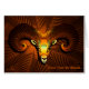 Multiple fractal images combined to form a colourful ram's head on a background which looks like carved wood. Add you own text.