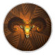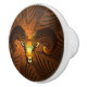 Multiple fractal images combined to form a colourful ram's head on a background which looks like carved wood.