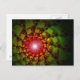 A Mandelbrot-type fractal with a slight spiral, almost a roulette-wheel shape, in red and green, with a bright focus in the eye of the spiral.