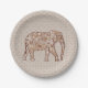 Mixed pattern digital graphic of a richly embellished elephant  against an arabesque tiled background - Fractal swirl pattern in shades of light to deep taupe and cream accented with chocolate brown