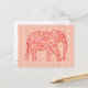 Fractal swirl elephant - coral orange and white postcard