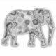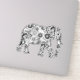 Sticker in a mixed media digital graphic of an elephant - Fractal swirl pattern in black, white and shades of grey / grey against a silver grey background