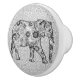 Knob in a Mixed media digital graphic of an elephant against an arabesque tiled background - Fractal swirl pattern in black, white and shades of grey / grey against a silver grey background