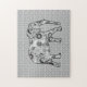 Fractal Swirl Elephant, Grey, Black and White Jigsaw Puzzle