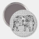 Fractal swirl elephant - grey, black and white magnet