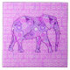 Mixed pattern digital graphic of a richly embellished elephant against an arabesque tiled background - Fractal swirl pattern in amethyst purple and soft shades of orchid and violet