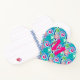 Heart shaped notebook in a fractal swirl pattern in shades of blue, pink, green and turquoise, accented with white, with personalised monogram