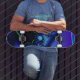 Black, blue and turquoise fractal pattern. Skateboard available in several sizes.