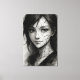 Fractured Smile captures the fragile elegance of a porcelain-like face hiding deep emotional fractures. This expressive black-and-white ink portrait depicts a female profile with a delicately cracked surface, as if the smile she wears is barely holding her together.