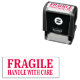 Simple office stamp. Design features ''FRAGILE HANDLE WITH CARE '' in modern capital font in red colour on white background.