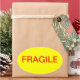These yellow oval shipping labels have "Fragile" in large red font. This design can be purchased as-is or you can use it as a template to make your own shipping label design. This label can have any warning message desired.