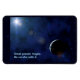 The earth and moon back lit by the sun; accompanied by text reading, "Small planet; fragile. Be careful with it."