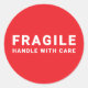A simple typographic design with sample custom text "Fragile handle with care" in modern typography in white on a red background.