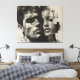 Fragmented portraits of two individuals, united in an abstract composition that explores the complexity of human emotions. The expressive technique and monochrome palette intensify the visual impact.