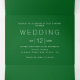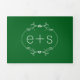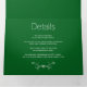Elegant white frame and initials monogram emerald green tri-fold wedding invitation. It showcases your initials in a white frame with leaves on green on the the cover. The inside panels include your text while there is a photo on the outside back and the date of the wedding on the outside flap.