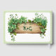 Lovely frame with greenery and stripes St. Patrick's Day Irish wedding guest book. This design showcases a vintage wooden frame adorned with delightful greenery and a border of soft pale green stripes. The front of the book features the names of the couple, beautifully written in a Celtic font. On the back, you'll find the initials of the couple's names within the same lovely frame. While it may not be the traditional clover design, the lush greenery and elegant font make this guest book a stunning choice for your St. Patrick's Day celebration.