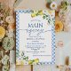 She found her main squeeze bridal shower invitation featuring some yellow and white flowers, lemons and foliage arrangements and a Mediterranean blue tile border. Ideal for a spring or summer bridal shower.