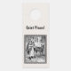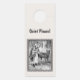 This paper door hanger for your home or a gift is white with a framed image of a black and white illustration of little red riding hood in the woods with her basket talking to the wolf. Customise the Quiet Please with the template.