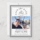 This design features a silver and white border framing entire design. Top centre features a cross with the letters "IHS" over it, the image of palm leaves just below. The words, "Save the Date!" are displayed as an arch encircling image. Your photo is displayed as main image. Names of bride and groom appear just below. City and state are displayed at very bottom. Reverse side features the Bible-verse of your choice. All text is in a lovely silver font, matching border.