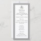 Framed Catholic Bible Verse design features the Catholic symbol for Christ, along with cross as top centre image. Image of palm branches appears just below. Customisable menu is displayed on front. Reverse side features a personal message from the newly married couple, along with a chosen bible verse. Couple's names and date of wedding is displayed below. Entire design is framed by a lovely silver and white border. Designed to coordinate with the Framed Catholic Bible Verse Wedding Suite.