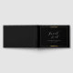 Elegant modern faux gold frame with stylish guest book script and serif font content on black background, simple and sophisticated. Great guest book for modern classic wedding, luxe vintage wedding and simple formal wedding.