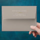 Elegant modern faux gold stripe with stylish serif font return address on kraft paper background, simple and sophisticated. Great wedding envelope for modern classic wedding, luxe vintage wedding and simple formal wedding.