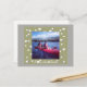 A silver gray background with a frame of gold accented by romantic hearts in various sizes. Add your photo and personalize this pretty Save the Date.