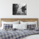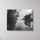 This contemplative black-and-white photograph captures a tranquil river framed naturally by overhanging trees and leaves. The stillness of the water mirrors the soft sky, while the gentle ripples and subtle reflections draw the eye towards the distant horizon. A quiet moment of connection between land, water, and sky—this image evokes peace, presence, and a return to nature. Ideal for mindfulness spaces, lake house decor, or anyone who finds calm near water.