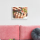 Very impressive product! The canvas is sturdily made. It features a saw tooth hanger on the back, making it easy to "try out" the canvas in several rooms until I found the best location. It attracts good comments from my friends. I love it! The printing is wonderful! Colors are as bright and crisp as they appeared on the website.