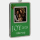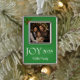 Framed photo ornament is shown in silver tone metal with a green color background and a sample photo, customize this ornament and just change the photo to your own great photo and change the text if you wish with this template.