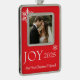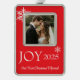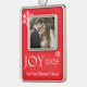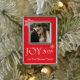 Framed photo ornament is shown in silver tone metal with a red color background and a sample photo, customize this ornament and just change the photo to your own great photo and change the text if you wish with this template.