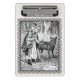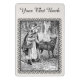 This mini clipboard has a vintage black and white illustration of little red riding hood in her hooded cape talking to the wolf under trees in the woods in an ornate black frame.  Customise the text on the back with the template.