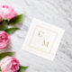Framed Monogram Foil Wedding Napkins – Classic Initials & Wedding Date. Simple, timeless, and refined – these foil-stamped wedding napkins feature two large serif initials framed in a fine square outline, with the wedding date elegantly placed below. The geometric structure adds a modern balance to a traditional monogram look.