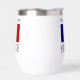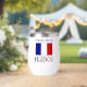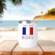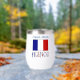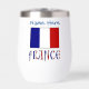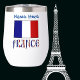 Personalised stemless wine tumbler features the French Flag showinh with the word FRANCE below in letters coloured with the French tricolor. Above is a spot for a name, in blue letters, for a personalised look. Great for Bastille Day, family reunions, travel groups, and clubs. Lovely housewarming gift. Great for Mum or Dad on Mother's Day or Father's Day.