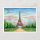 With this personalized watercolor postcard of the Eiffel Tower, you can capture the allure of Paris. Ideal for tourists, travelers, or sending a stylish welcome with a cityscape. For a fashionable touch, include your name and address. A memento gift for lovers of France and architecture. A contemporary, creative trip memento to cherish.
