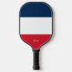 Display your national pride on the pickleball court with the bleu, blanc, et rouge of the flag of France. One side of the paddle reflects the order of the flag's colours when held horizontally in the right hand, while the other side displays the order when held in the same position in the left hand. Personalise it by inserting your own name in a French font, in the required field. Vive la France!
