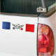 Vintage style bumper sticker design for France national team supporter featuring a soccer ball with wings, champion star and the French flag and chant - "Allez les Bleus".