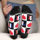 Fun patriotic socks for proud French people and anybody who loves the nation of France. Featuring a unique black and white chequered pattern with red hearts on the white squares, and the black squares filled in with a map of France filled in with the French national flag. These are a great way to show your pride for your favourite country, and make a fun gift idea for friends and family who love France.
