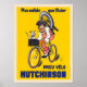 Vintage advertising poster for French bicycle tires. Plus solide que l'acier, pneu vélo Hutchinson.