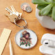 A beautiful vintage Christmas key chain featuring a young winter girl with holly, painted by the American illustrator Frances Brundage.