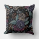 Shimmering Watercolor in a modern floral features peonies and roses with botanical details. Orange, magenta, purple, and mint green on black. Add a designer touch to your home decor or work space with this floral throw pillow!