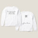 I like the understated lettering and the soft, comfortable material; in addition, the XL size is true to size - especially with the arm length being quite ample.